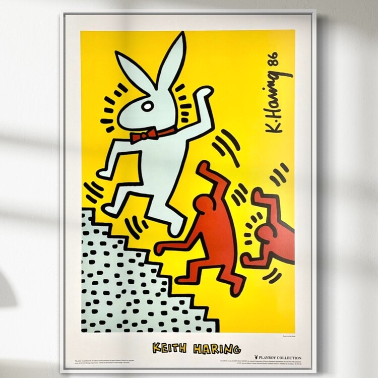 1986년 키스헤링이 플레이 보이잡지를 위해 제작한 Playboy Collection 중 하나인'Bunny on the Move' 작품 입니다. 1990년 키스 헤링이 생을 마감한 후, 플레이 보이에서 당시 발행했던 Playboy Collection 작품들을 스페셜 리미티드 에디션으로 2000부 한정 재발행하였습니다.